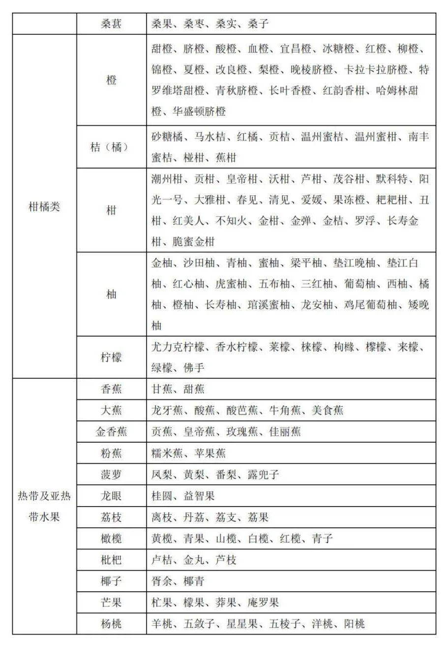 3、水果別名及常用商品名稱對(duì)照表